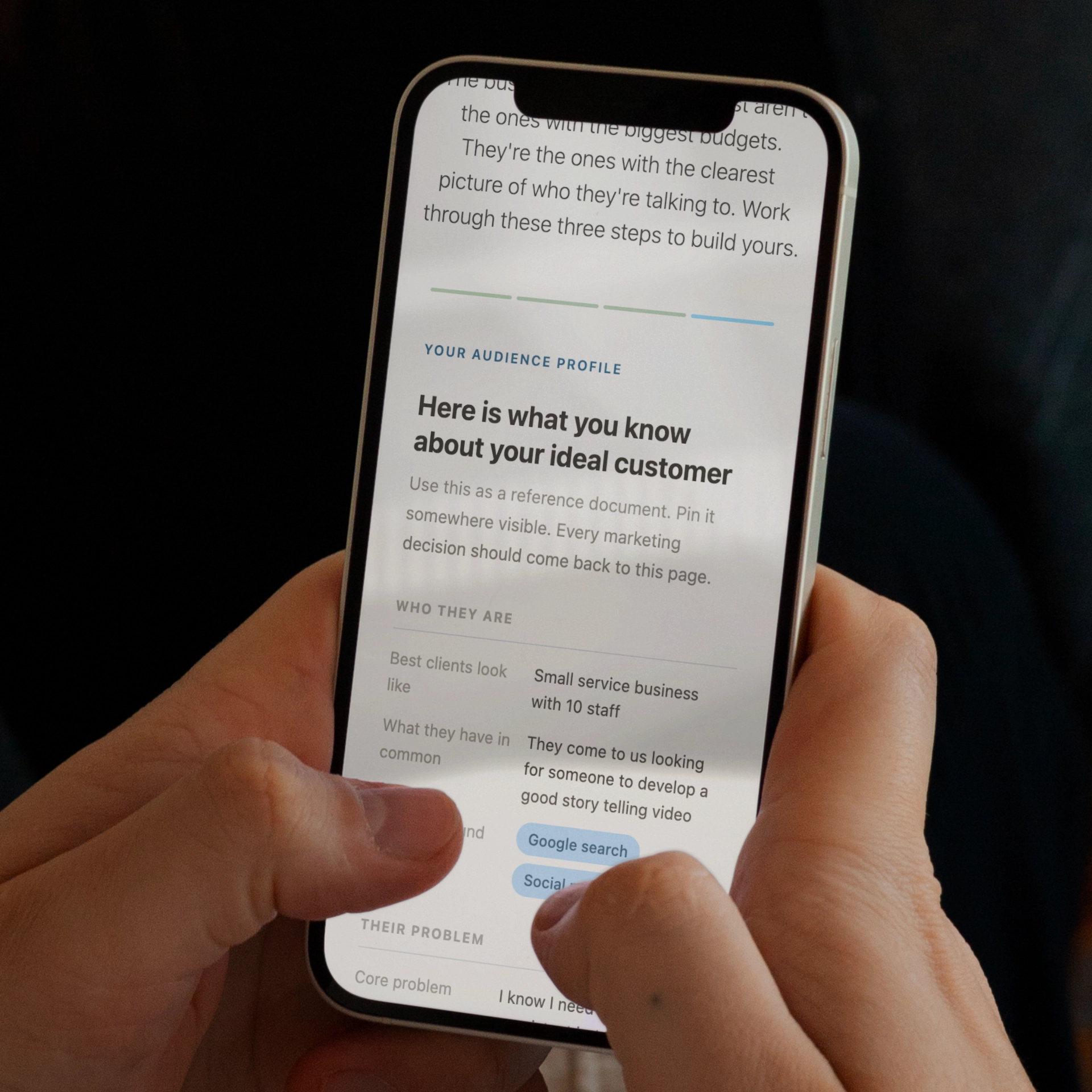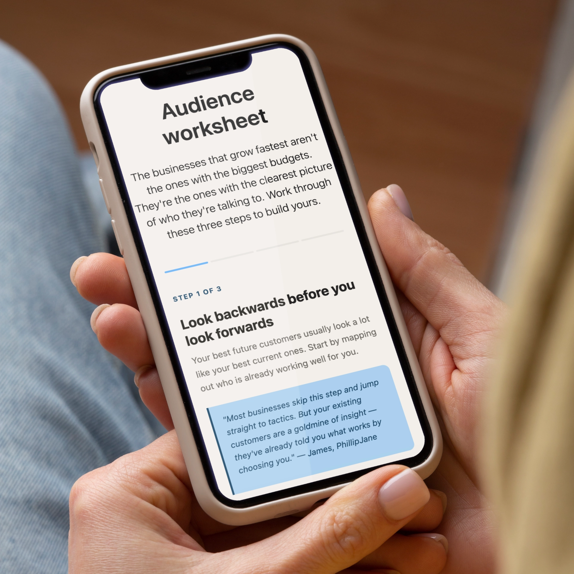 The Audience Worksheet is one of the most important tools in the series. Most businesses skip this step and go straight to tactics — and it's exactly why their marketing doesn't compound. This three-step worksheet defines your ideal customer: who they are, what problem they're solving, and where to find them. Get this right and every marketing decision you make from here becomes easier and more effective.
