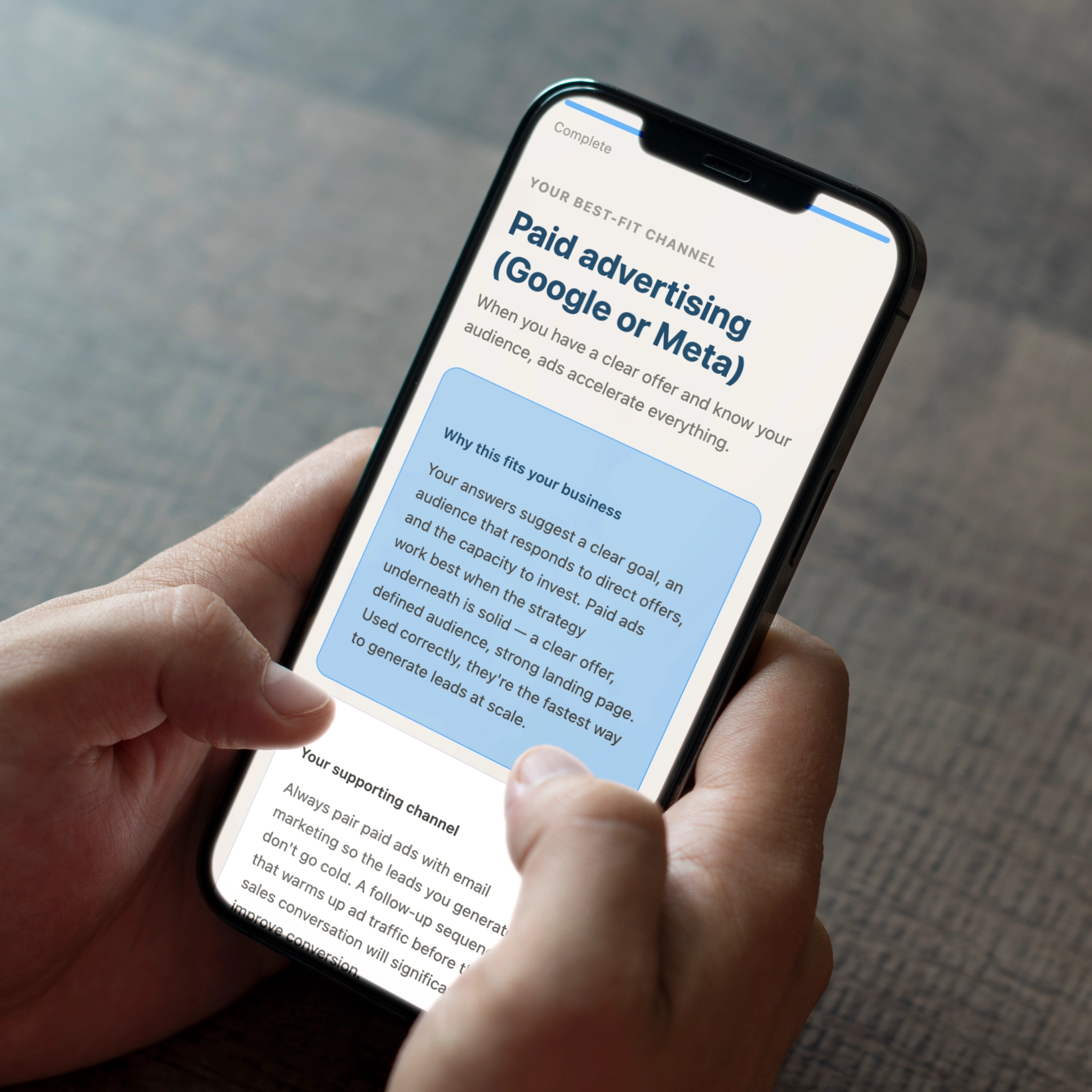 The Channel Fit Quiz takes the guesswork out of one of the most costly decisions in marketing — where to actually show up. Five questions, two minutes, and a personalised recommendation based on your audience, your goals, and your available time. Without this clarity most businesses spread across too many channels and do none of them well. This gives you a clear answer so you can commit with confidence.
