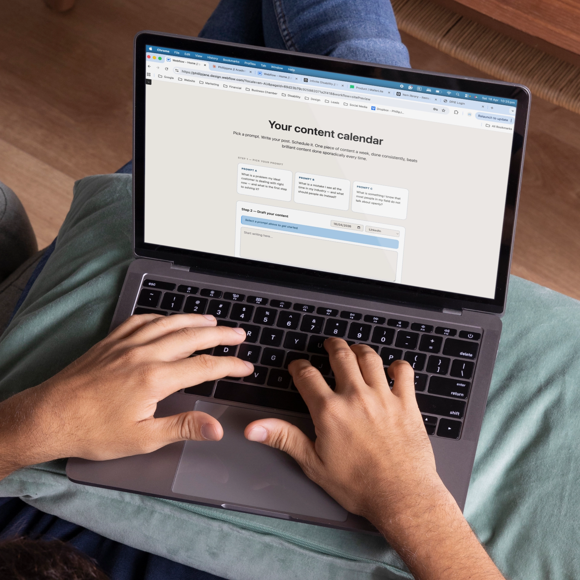 The Content Calendar turns good intentions into consistent output. It's one thing to know you should be posting regularly — it's another to have a system that makes it happen without the weekly scramble. Built around three proven prompts that never run dry, this tool is what makes consistency possible. And consistency is the single biggest difference between marketing that compounds and marketing that stalls.