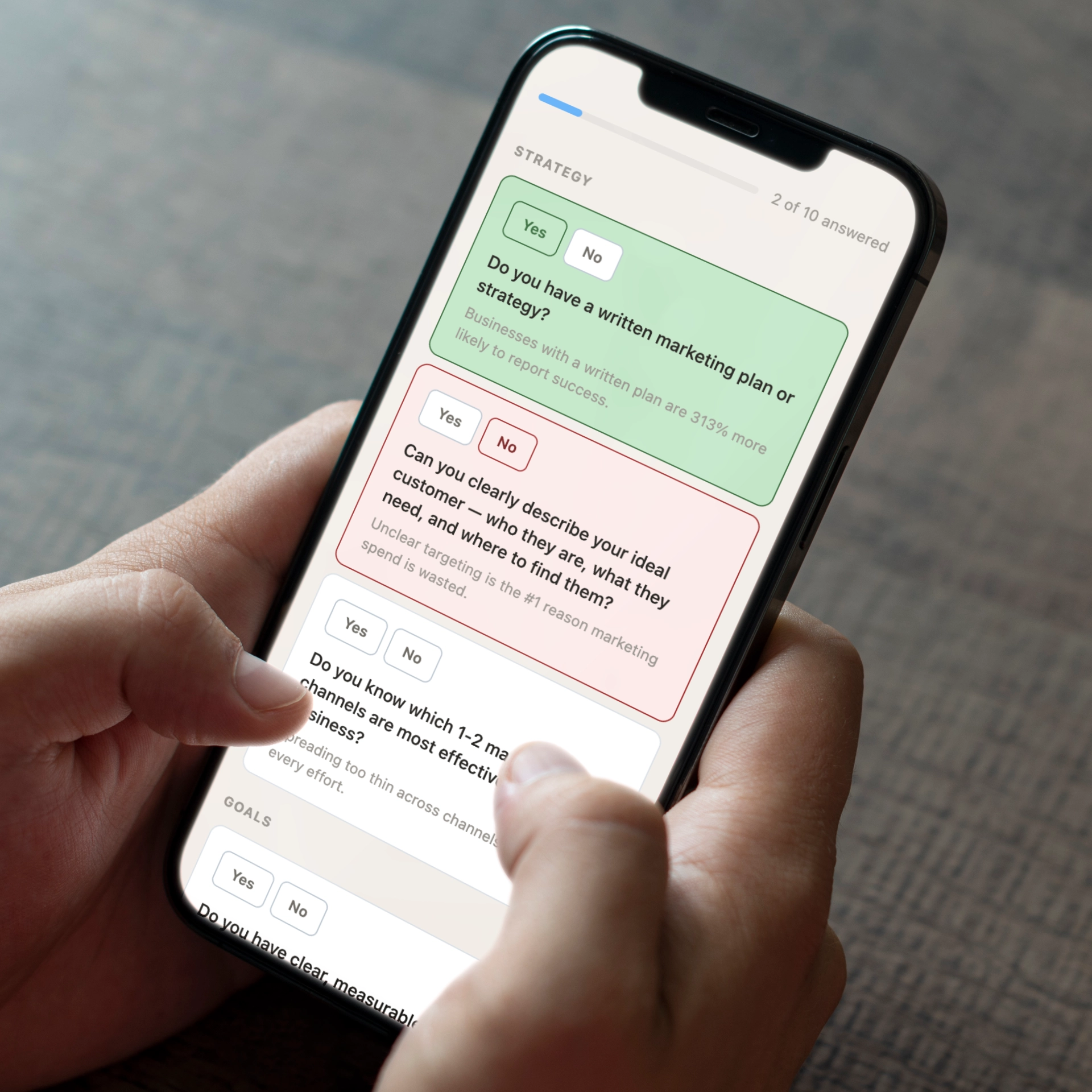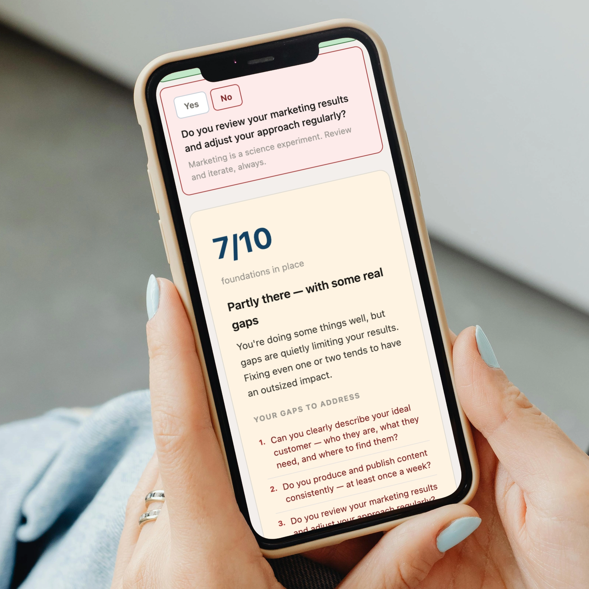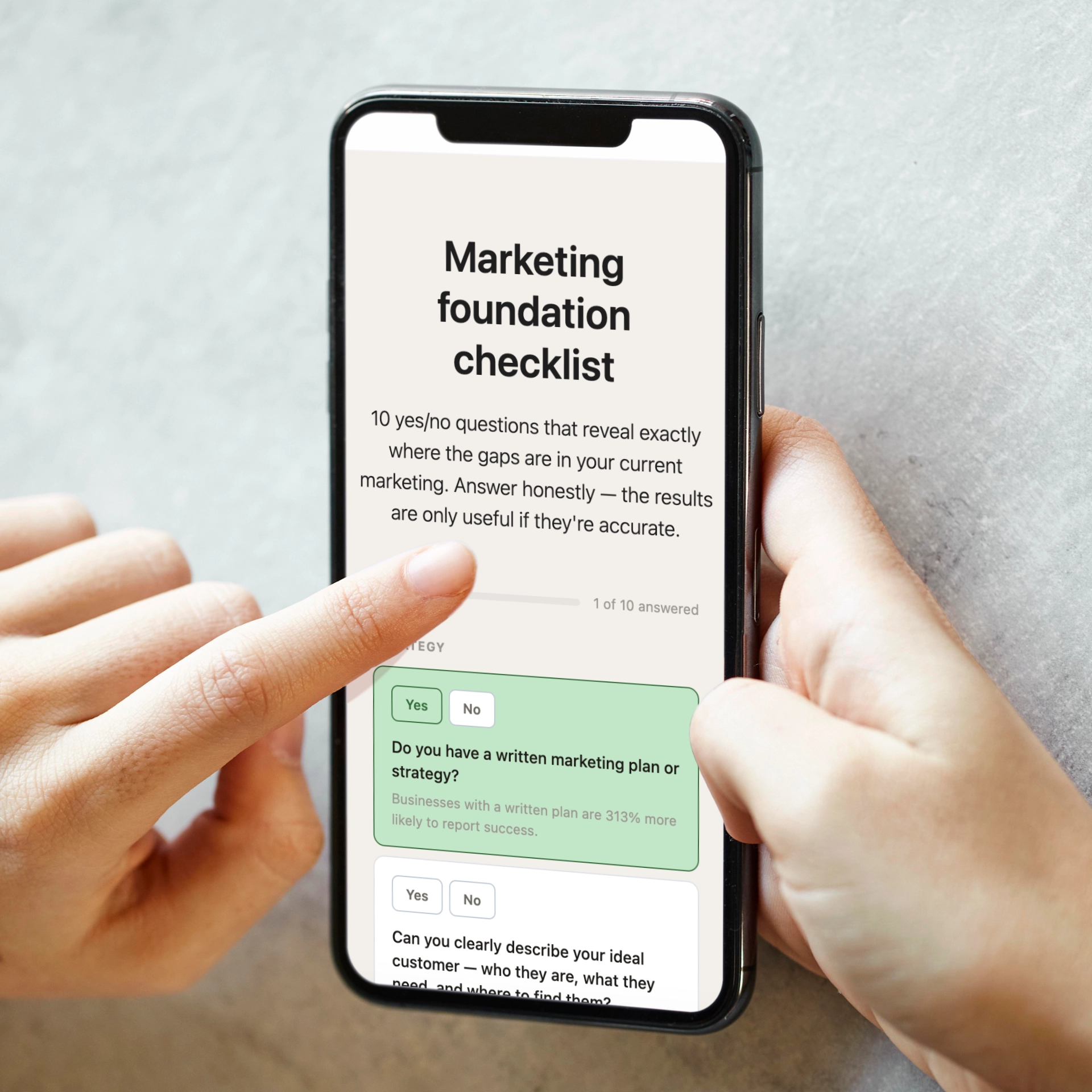 The Marketing Foundation Checklist is your starting point. Ten yes/no questions that reveal exactly where the gaps are in your current marketing — no jargon, no fluff. Most business owners find that seeing their answers laid out clearly is the first time they've had an honest picture of where they actually stand. It takes five minutes and sets the direction for everything that follows.