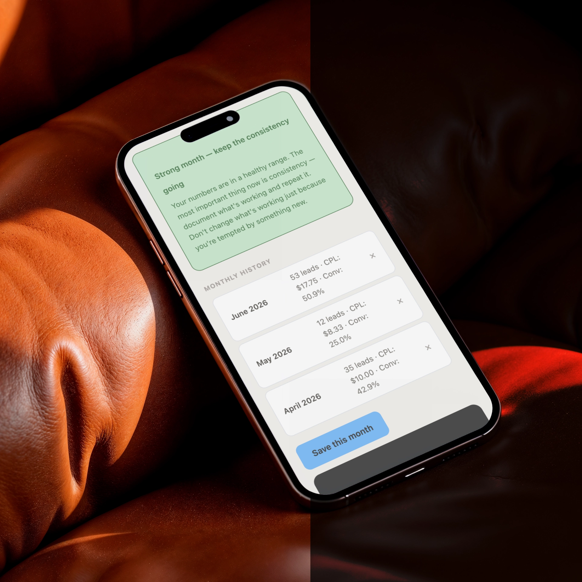The Marketing Scorecard gives you the three numbers that actually tell you whether your marketing is working, leads generated, cost per lead, and conversion rate — tracked monthly and reviewed in 15 minutes. Without this you're flying blind. With it, you always know where to focus and what to adjust. This is what turns marketing from a guessing game into a manageable system.